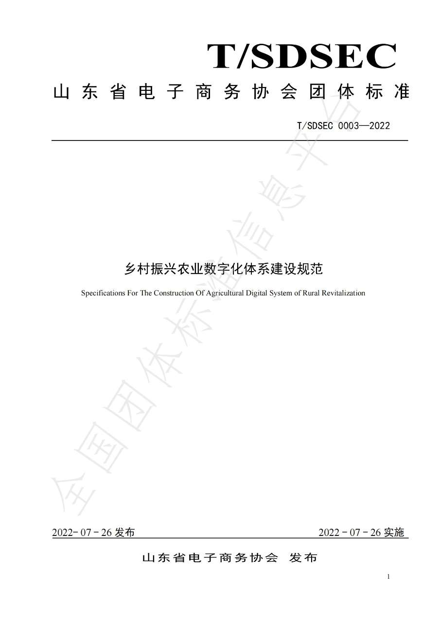 山东省电子商务协会关于发布《乡村振兴农业数字化体系建设规范》团体标准的公告