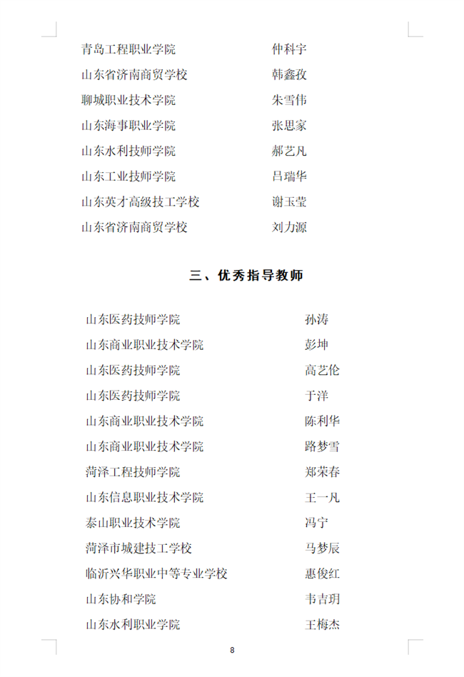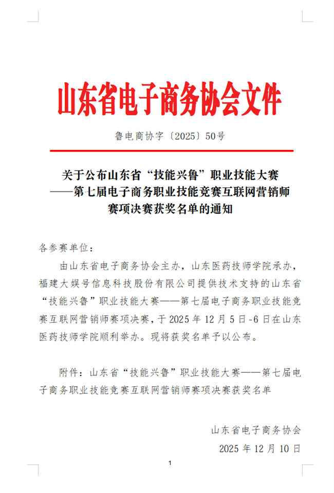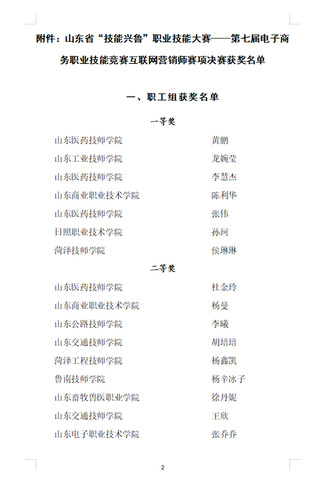 关于公布山东省“技能兴鲁”职业技能大赛一第七届电子商务职业技能竞赛互联网营销师赛项决赛获奖名单的通知