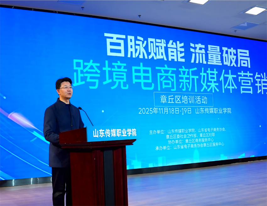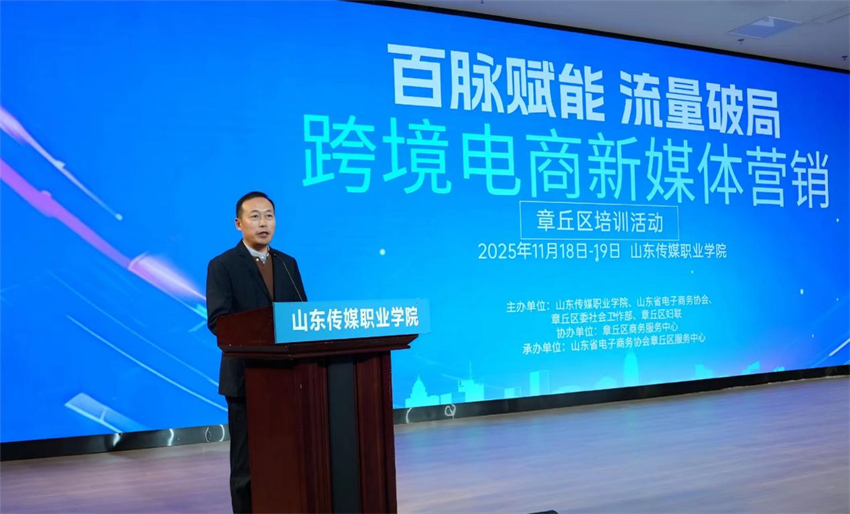 11月18日,“百脉赋能·流量破局——章丘区跨境电商新媒体营销培训服务活动”在山东传媒职业学院正式拉开帷幕。本次活动由山东传媒职业学院、山东省电子商务协会、章丘区委社会工作部与章丘区妇联联合主办,山东省电子商务协会章丘区服务中心具体承办,章丘区商务服务中心全程提供支持。为期两天的多元化培训,吸引了80余家章丘本地企业及近百名山东传媒职业学院同学参与,不仅为章丘本土企业量身定制了数字化转型“精准赋能包”,更通过校地企三方深度联动,为区域电商产业升级与经济高质量发展注入强劲动力。